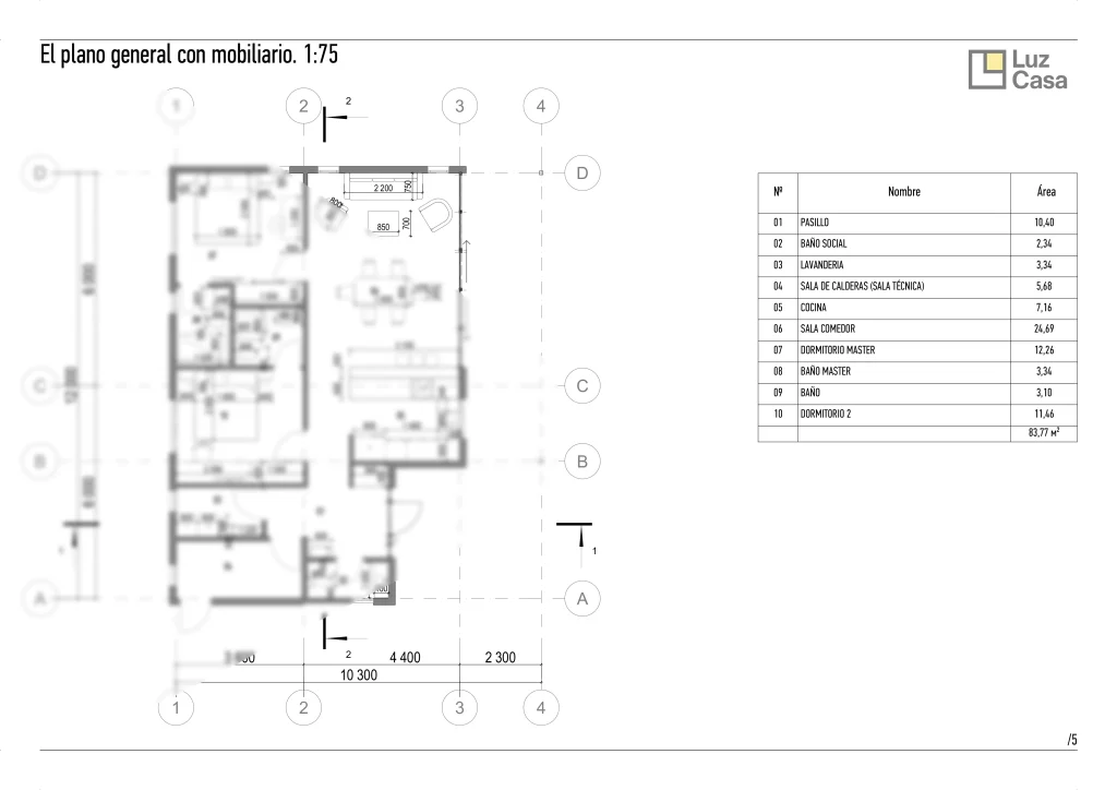 Un piso, dos dormitorios, tres baños, espacio vital 83.8m2 | CASA – 001